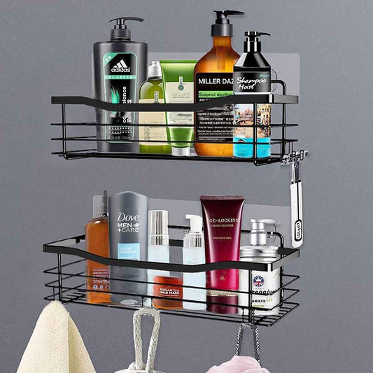 Soapix™ | Duschregal ohne Bohren – 2er-Set aus Edelstahl mit 5 Haken