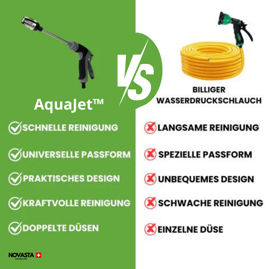 Der AquaJet bietet eine bequeme und mühelose Lösung für die Beseitigung von Schmutz, Dreck und Staub und verspricht ein müheloses Reinigungserlebnis.