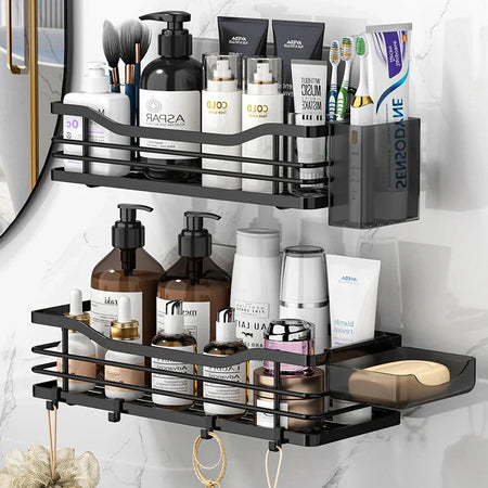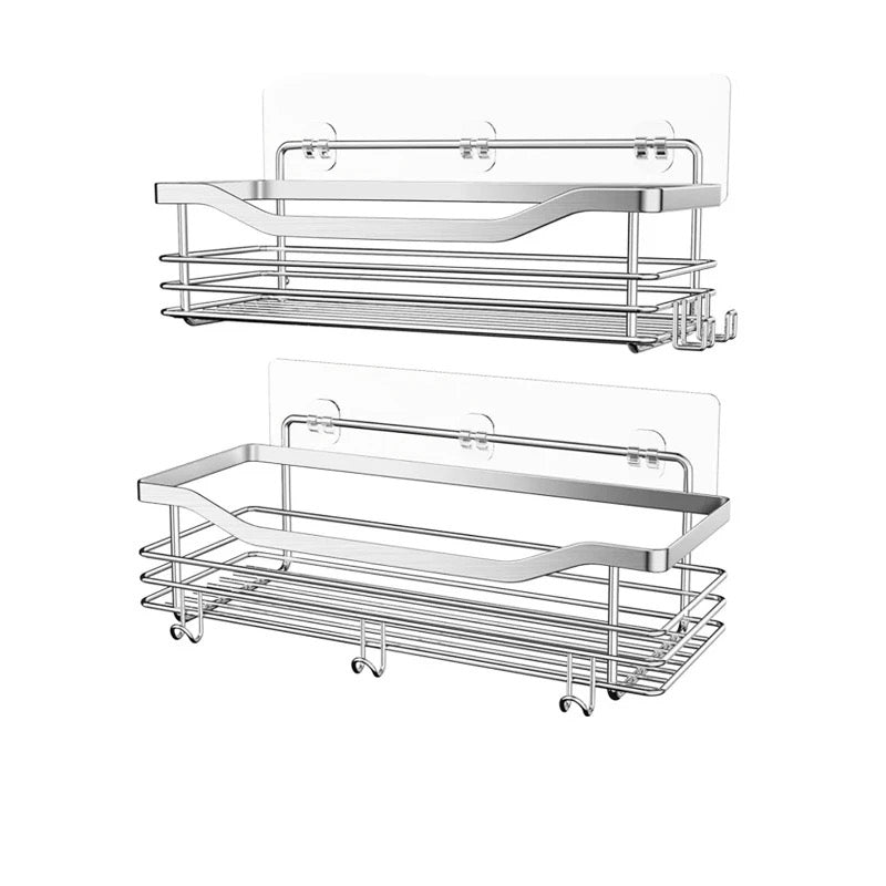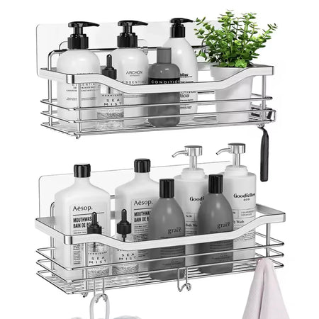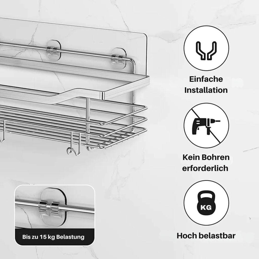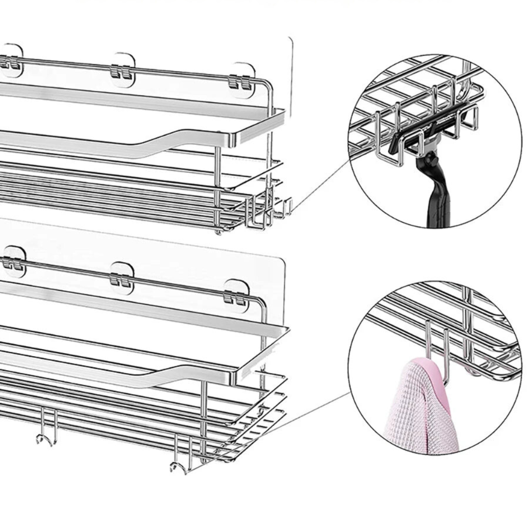 Soapix™ | Duschregal ohne Bohren – 2er-Set aus Edelstahl mit 5 Haken